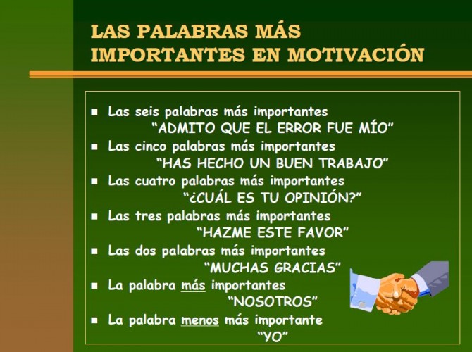 Se necesita, pues, la MOTIVACIÓN INTERNA, la AUTOMOTIVACIÓN. Nadie se ahoga por caer al agua, se ahoga por no nadar, y nadar depende de la persona. Automotivación, palabra clave, mágica: energía que nace del interior e impulsa a hacer cosas (lo importante en la organización es que las cosas que quiera hacer la persona sean las que la organización necesita, pero ese es otro tema). Cuando se tiene automotivación, nada para a la persona en su camino; al contrario: no se derrumba ante la dificultades, persevera, e incluso “crea” las circunstancias para tener buena suerte (no “suerte”).