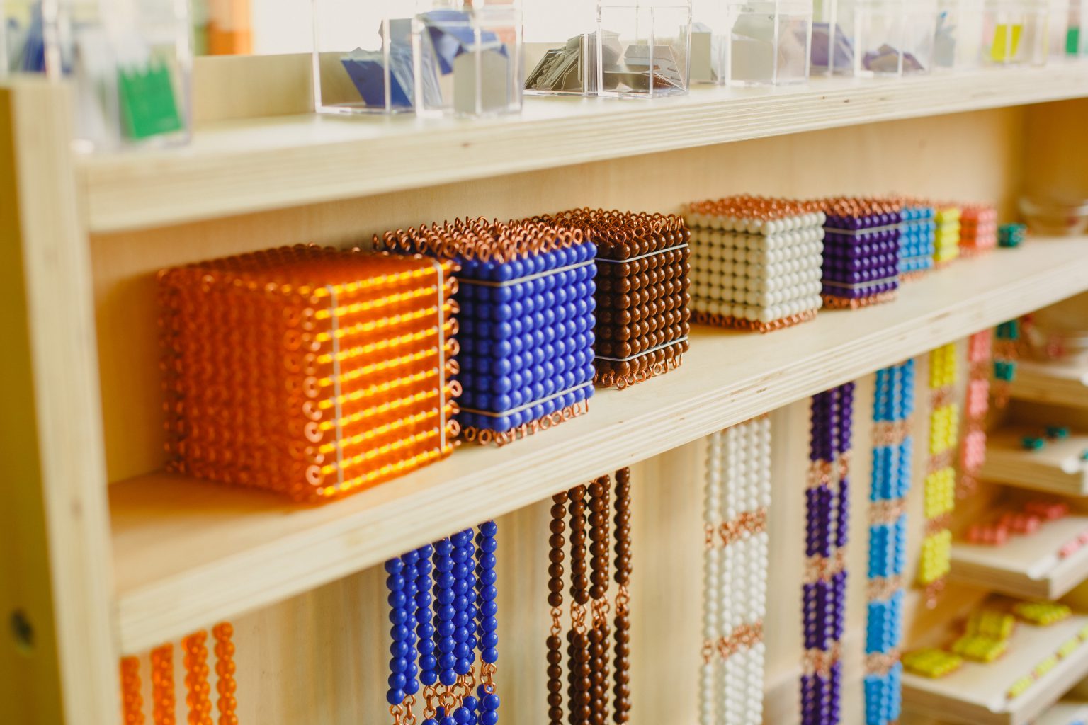 Los materiales en su conjunto, conforman lo que se conoce como “currículo expuesto”, es decir que el conjunto de todos los materiales en un aula de casa de niños, conforma el currículo que los niños aprenderán a lo largo de los 3 años. Por otro lado, los materiales tienen la particularidad de ser evolutivos, es decir, que el mismo material tiene distintos objetivos en función de la etapa sensible del niño.