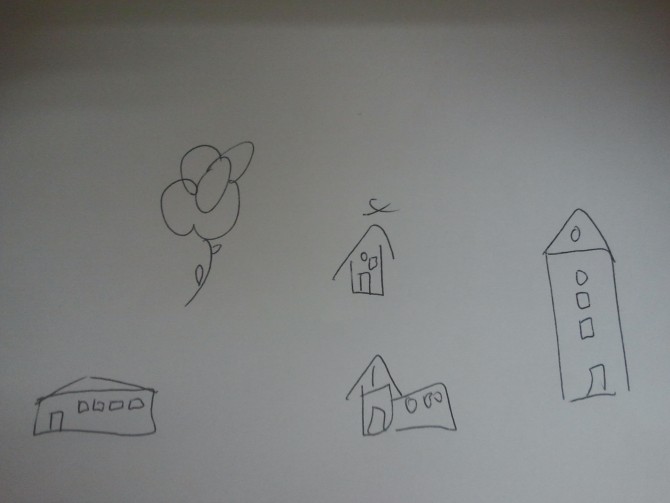 Para demostrar que a todos nos han “programado de la misma manera”, Juan pidió a los asistentes que dibujasen una casa en cinco segundos y luego pidió que dibujasen otras tres casas diferentes. La primera casa que todos dibujaron (con alguna pequeña variante) es la que todos estáis imaginando y que se puede ver en el dibujo de al lado de este texto marcada con una X. Luego, en las siguientes casas dibujadas, hubo de todo, desde casas-seta estilo pitufo a auto caravanas.