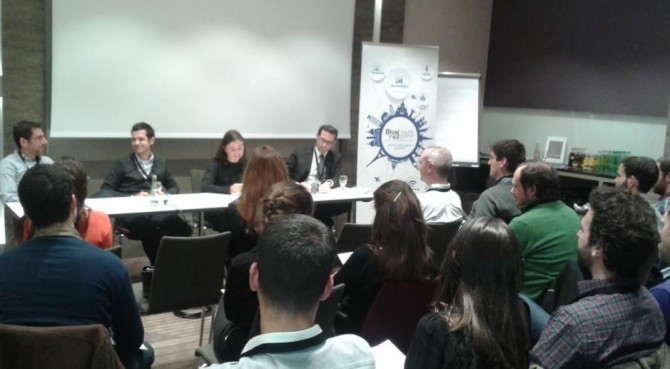 Comenzamos la mesa con la presentación de nuestros invitados, de forma que esto nos sirvió para conocer un poco más, no sólo su perfil, sino algunas características del sector y de los perfiles profesionales que podemos encontrar en él. Algo muy útil, pues como se comentó con posterioridad, cuando uno comienza a trabajar en una de estas empresas (muchas de ellas más grandes que algunas ciudades) no tiene ideas claras acerca de todos los tipos de trabajo que pueden desarrollarse en la misma y de los conocimientos y habilidades que, por tanto, deben trabajar.