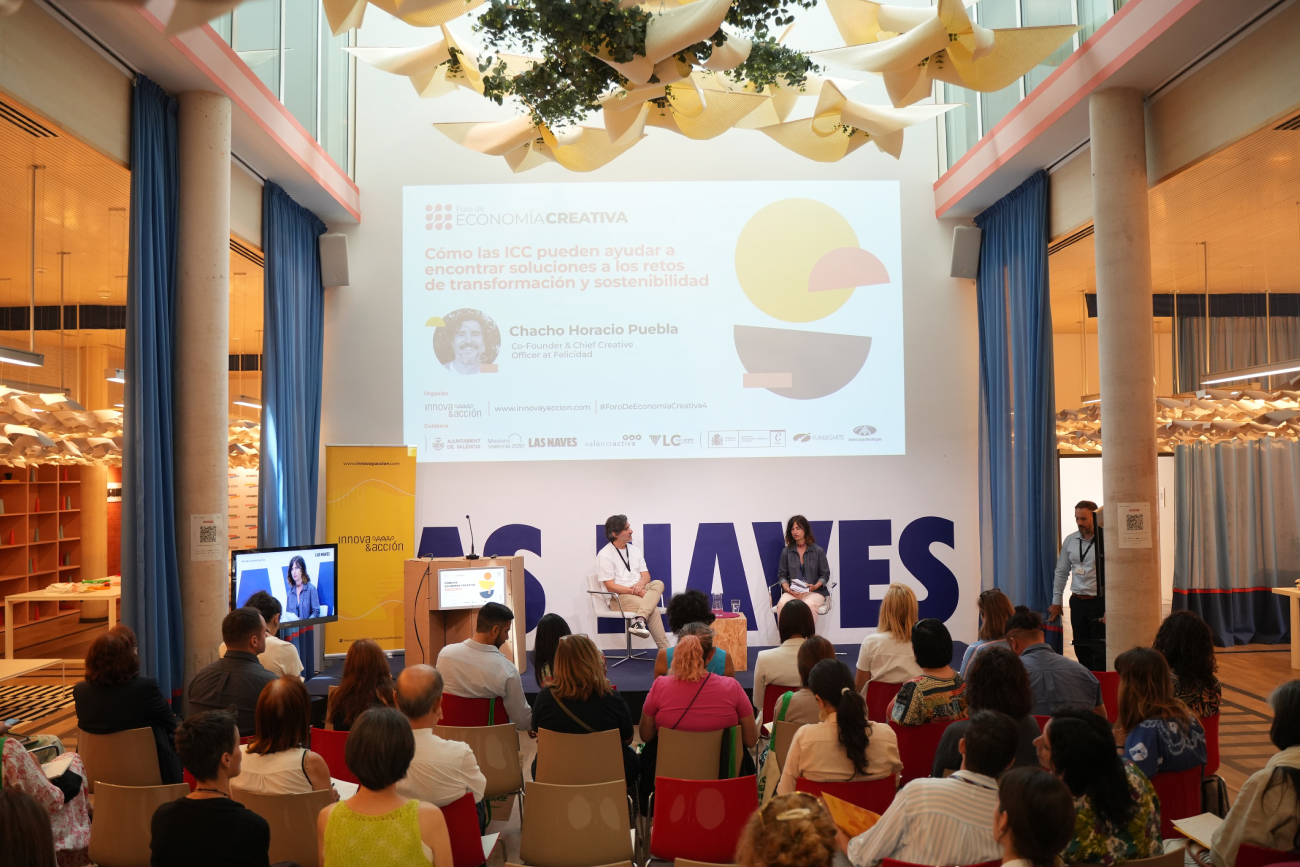 El pasado jueves 15 de junio, València celebró por cuarto año consecutivo el Foro de Economía Creativa en Las Naves. Una cita señalada en el calendario de la ciudad del Túria, que se ha convertido en todo un hito dentro de las Industrias Creativas y Culturales, y a la que no quisieron fallar los más de 80 profesionales que formaron parte de esta nueva edición. Una edición llena de inspiración y creatividad donde pudimos sumergirnos en ponencias, entrevistas y dinámicas que nos ayudaron a comprender la importancia y el valor que tiene la Economía Creativa para el desarrollo y crecimiento sostenible.