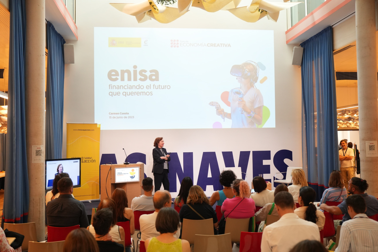 Pero, aunque muchas veces existen ideas buenas, no siempre estas se saben cómo llevar a cabo y hacerlas realidad. Para hablar de todo ello y enseñar a los asistentes cómo poder poner en marcha todas esas buenas ideas y conceptos creativos contamos con la ponencia de la experta Carmen Cuesta, Directora División Comunicación y Promoción en Empresa Nacional de Innovación. Hablándonos y dando a conocer a todos los participantes la nueva línea ENISA para las Industrias Creativas y Culturales, que busca financiar nuevos proyectos e ideas en relación con este sector, para poder hacer posible que nazcan y se lleven a cabo, y que por tanto nuevos proyectos den respuesta a los retos que vivimos hoy en día.