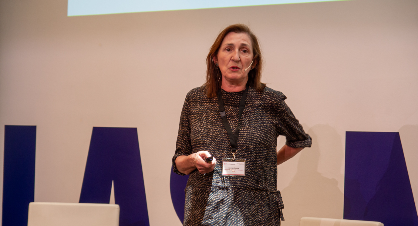 Antes de la pausa para el café, Eva Toledo, Co CEO de PADIMA presentó con una brillante ponencia una forma de financiación poco explotada, pero fácilmente accesible. Se trata de la propiedad intelectual e industrial y se basa en hacer tangible lo intangible dotando de valor y protegiendo legalmente, precisamente a estos intangible de la empresa como pueden ser licencias, bases de datos, permisos de construcción o listas de clientes, entre muchos otros.